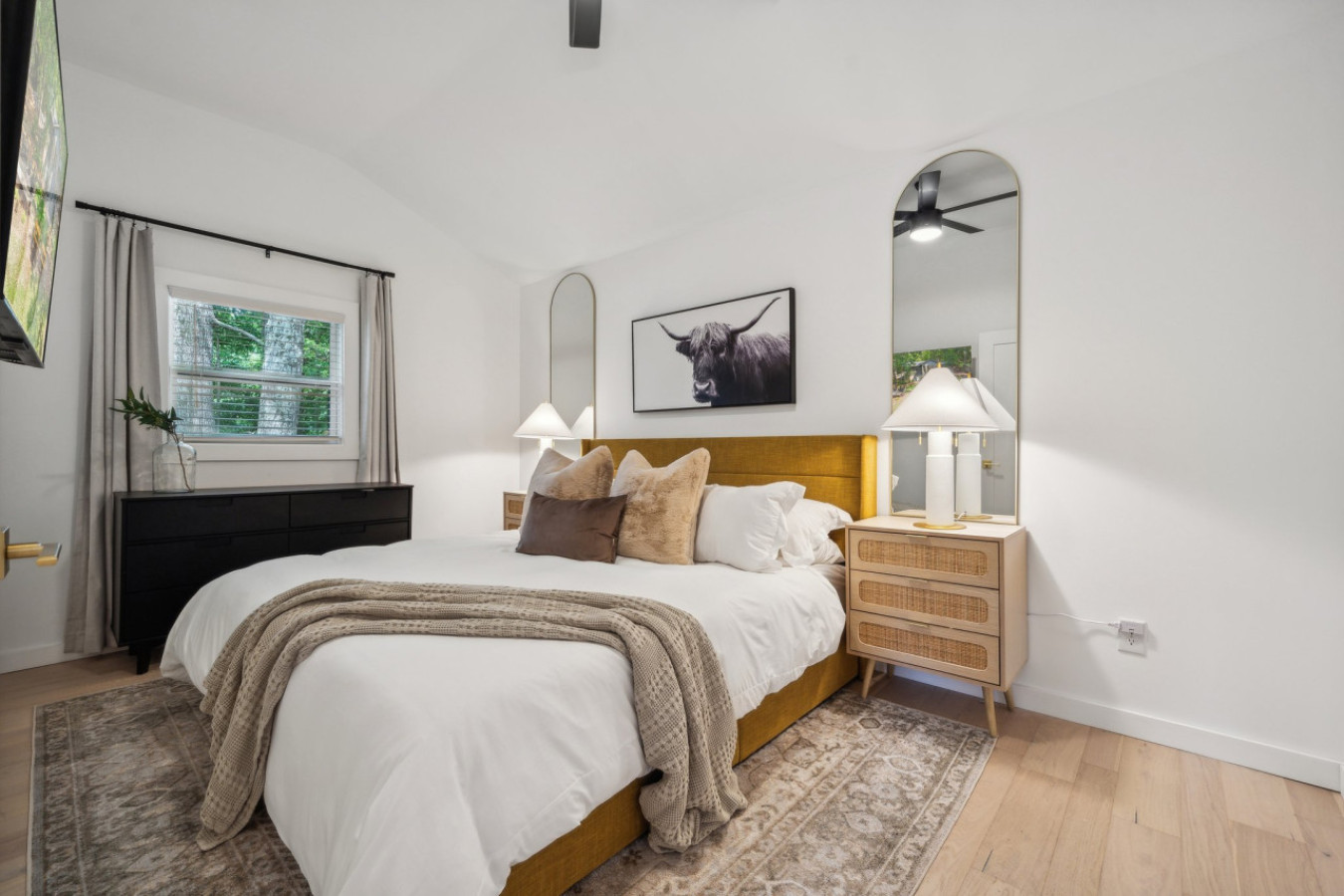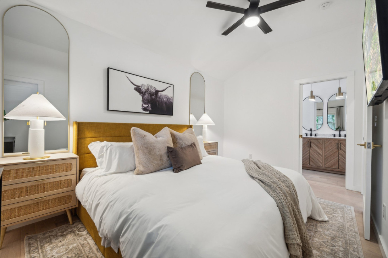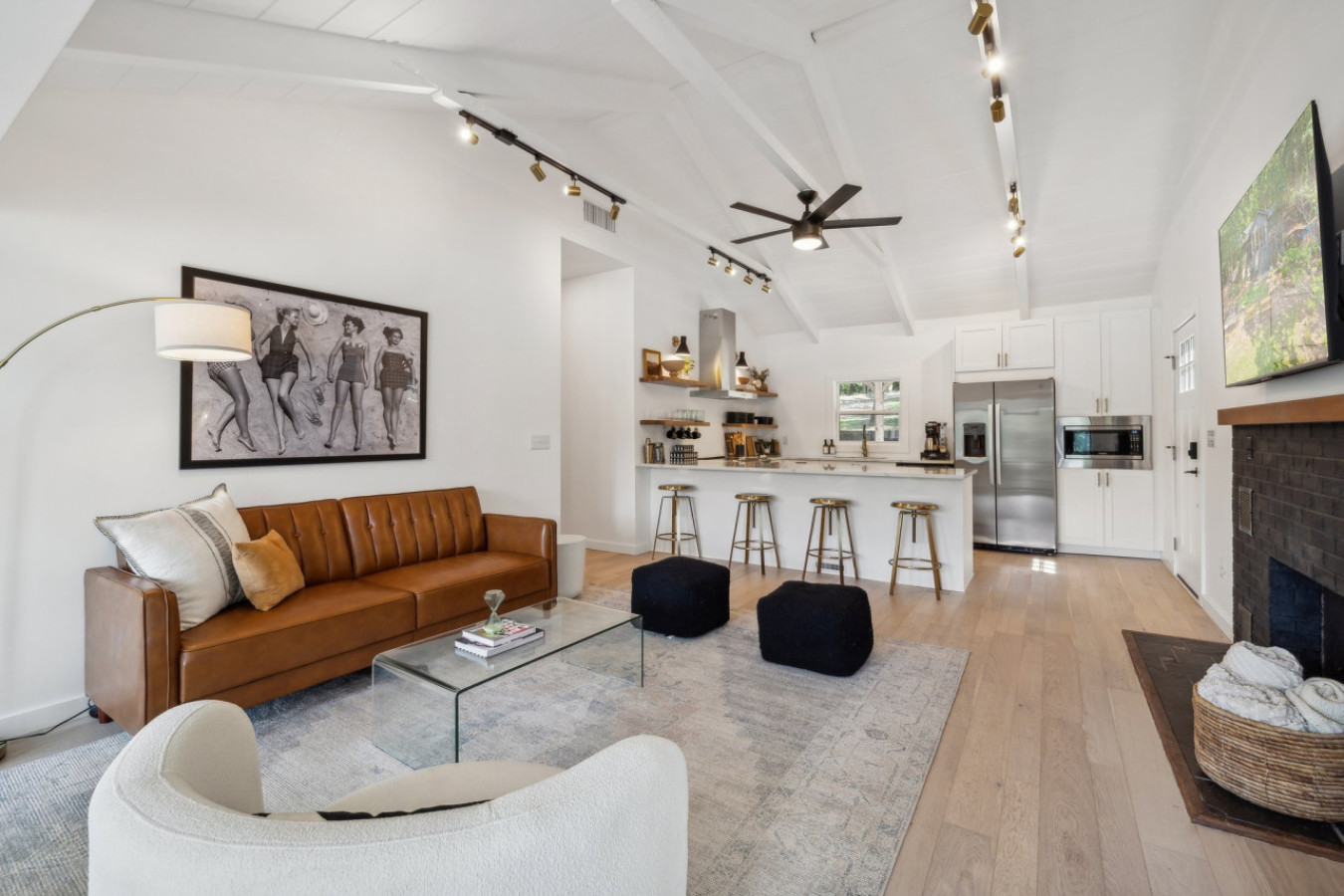 Cook up a feast in the fully equipped gourmet kitchen, featuring high-end appliances, quartz countertops, and a large island perfect for entertaining.