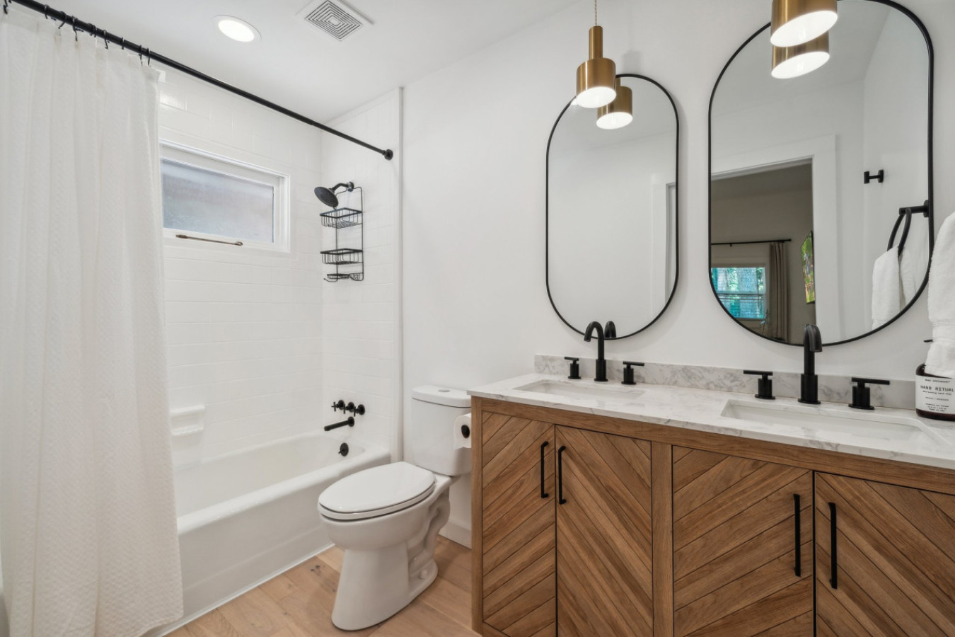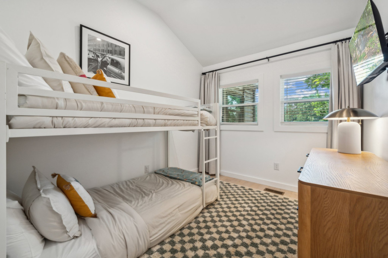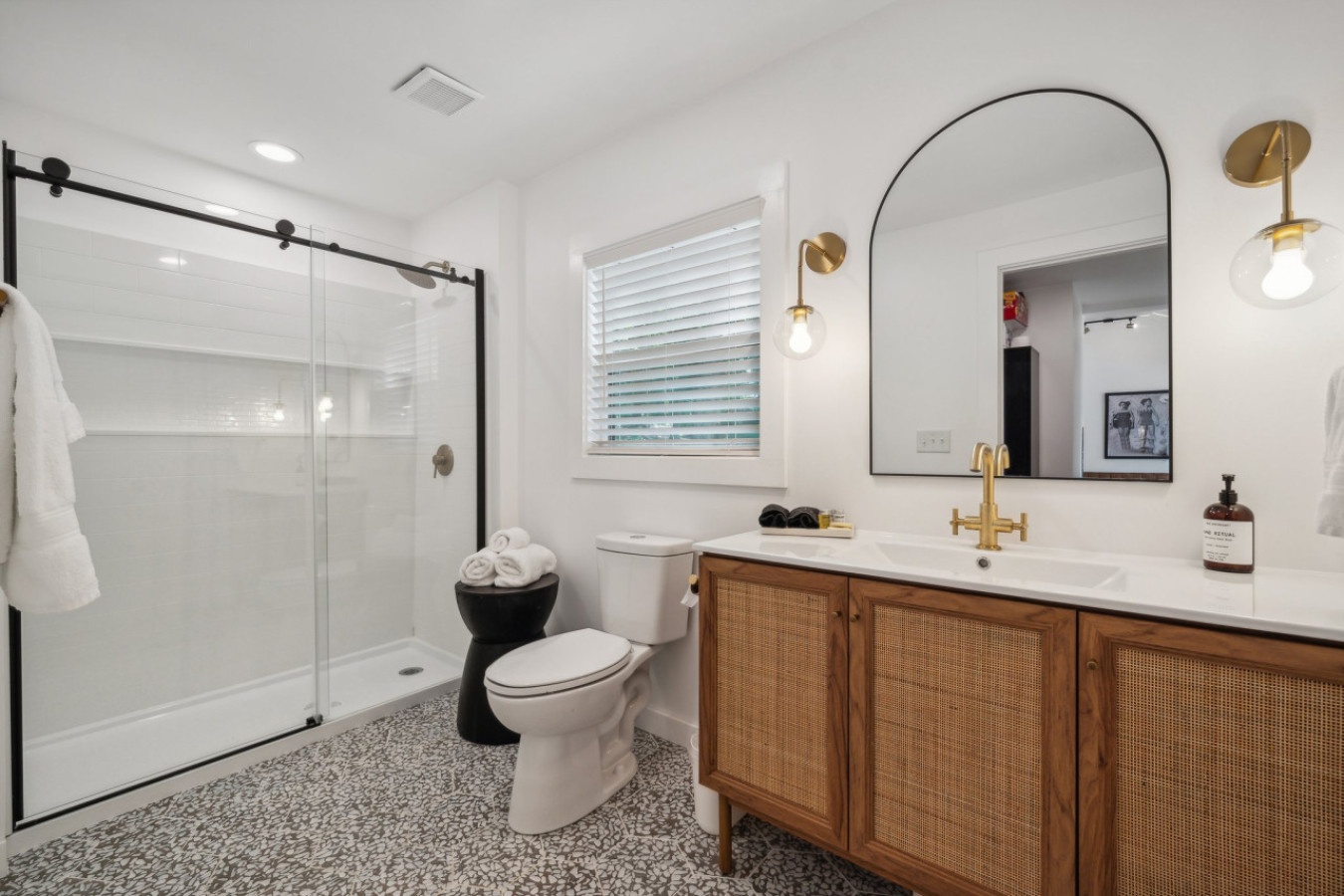 Cook up a feast in the fully equipped gourmet kitchen, featuring high-end appliances, quartz countertops, and a large island perfect for entertaining.