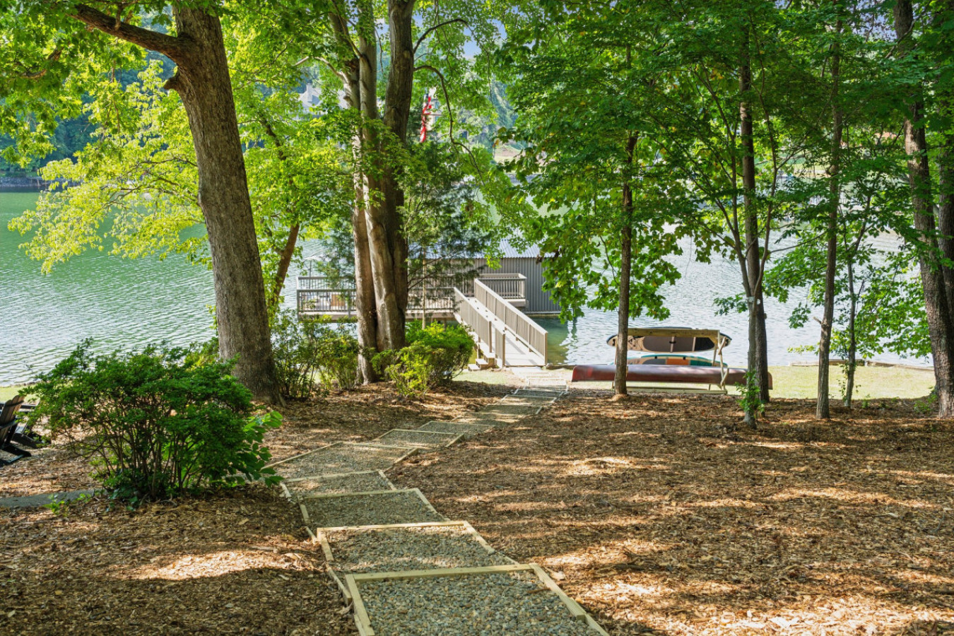 Start your day with a cup of coffee on the lakeside deck or private dock where you can bask in the morning sun and enjoy the peaceful sounds of both water and nature.