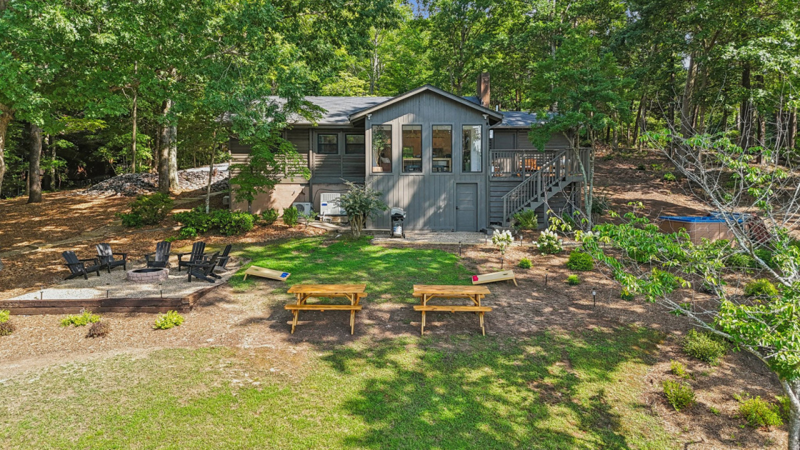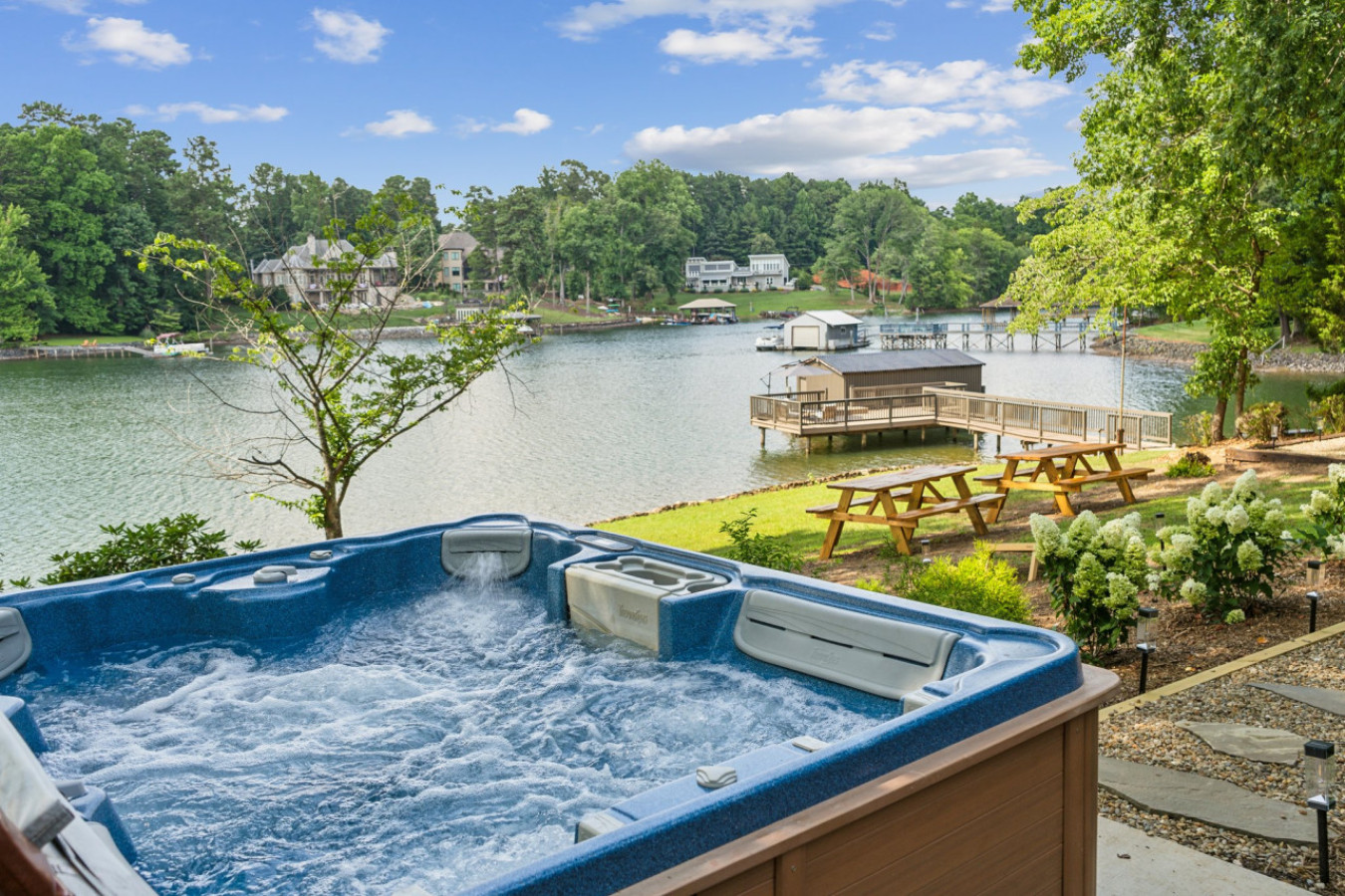 Enjoy a relaxing end of the day while enjoying the sunset in the waterfront hot tub or enjoying the warmth of the firepit with friends and family. Explore the many sights that Lake Norman offers in the 3-person canoe or learn to stand up paddle board in the private cove just steps away! Build a sandcastle with your family in the newly installed beach.