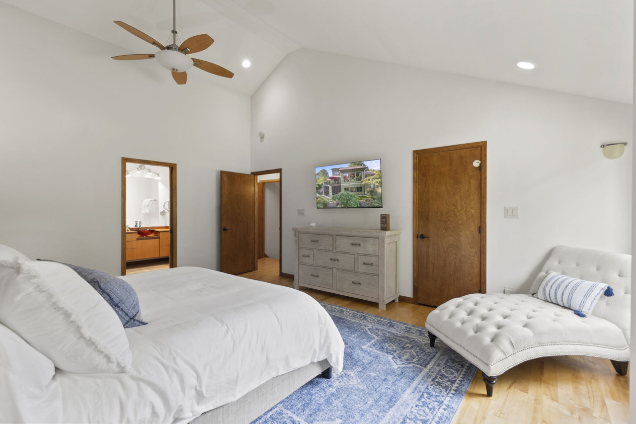 The bedrooms are cozy and designed for comfort, ensuring a restful night's sleep. Wake up to the sound of birds chirping and sunlight streaming through the windows, as you prepare for another day of relaxation and adventure.
